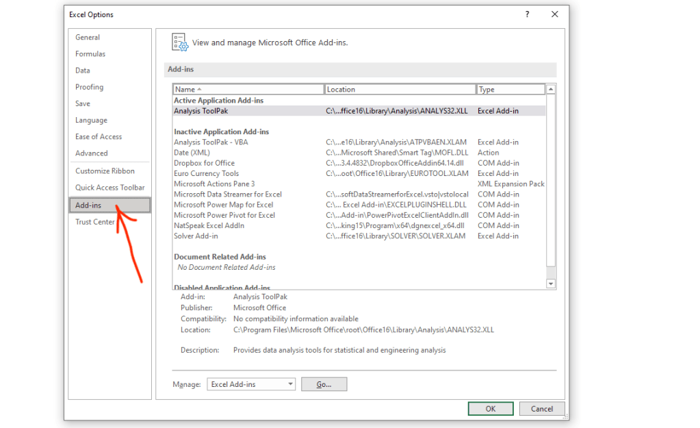 Step 1: Go to File > Options > Add-Ins